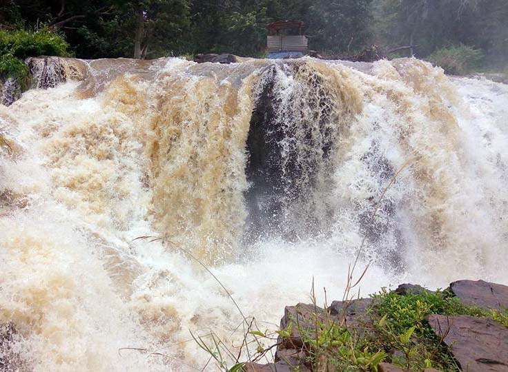 ஆர்பரித்த வெள்ளத்தில் அடித்து செல்லப்பட்ட பாதுகாப்பு வேலி இன்னமும் சீரமைக்கப்படாததால் ஆற்றுக்குள் சுற்றுலாப் பயணிகள் இறங்கி குளிக்க விதிக்கப்பட்ட தடை தொடர்ந்து நீட்டிக்கப்பட்டுள்ளது.