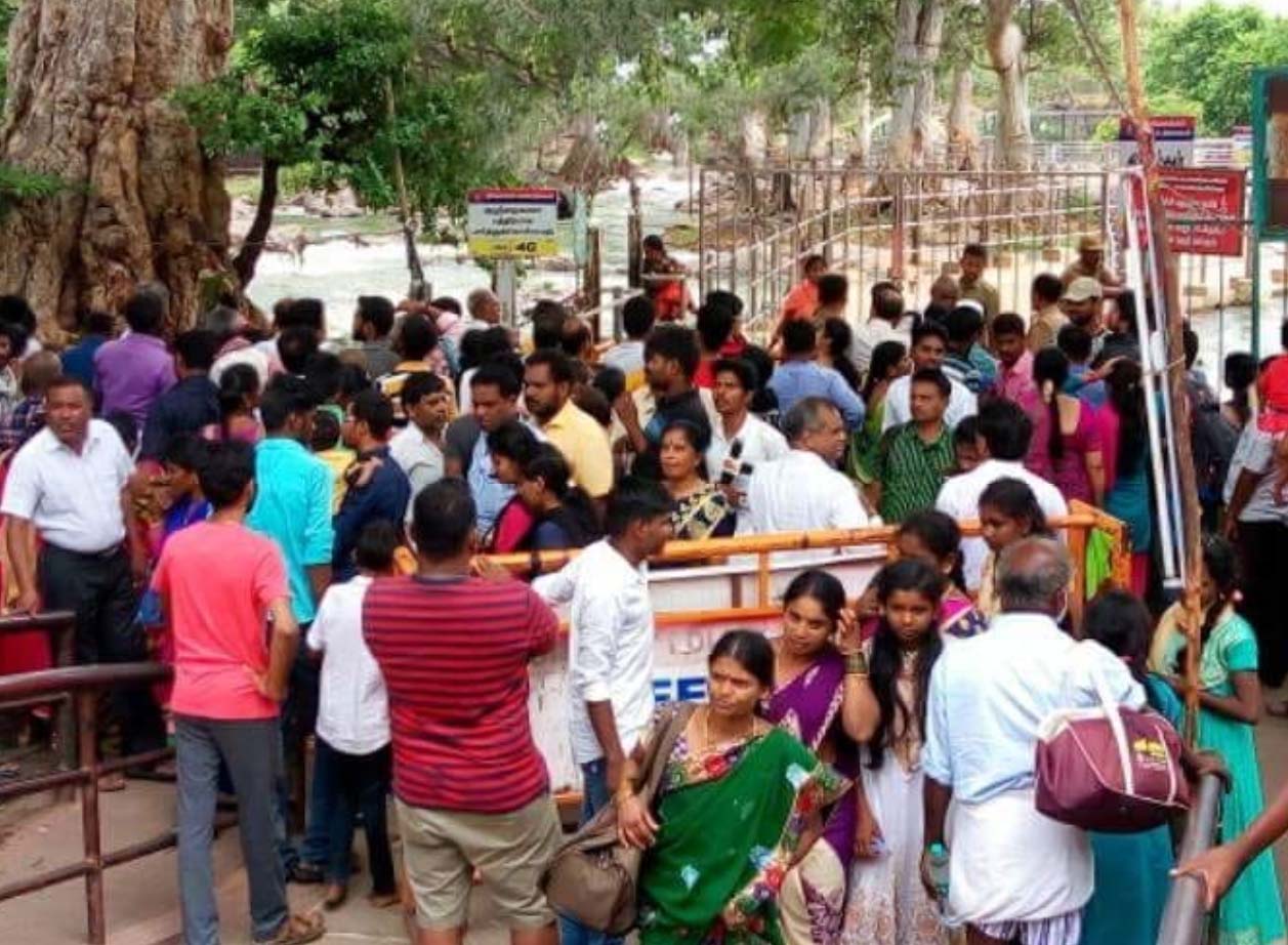கர்நாடக தமிழக எல்லைப்பகுதியான பிலிகுண்டுவிற்கு அதிகபட்சமாக 1.20 லட்சம் கனஅடிவரை நீர்வரத்து உயர்ந்ததால் ஒகேனக்கலில் வெள்ளம் பெருக்கெடுத்தது. இதன் காரணமாக, 30 நாட்களாக சுற்றுலாப் பயணிகள் அருவியில் குளிக்கவும், பரிசலில் பயணம் செய்யவும் தர்மபுரி மாவட்ட நிர்வாகம் தடையை நீடித்து வந்தது.