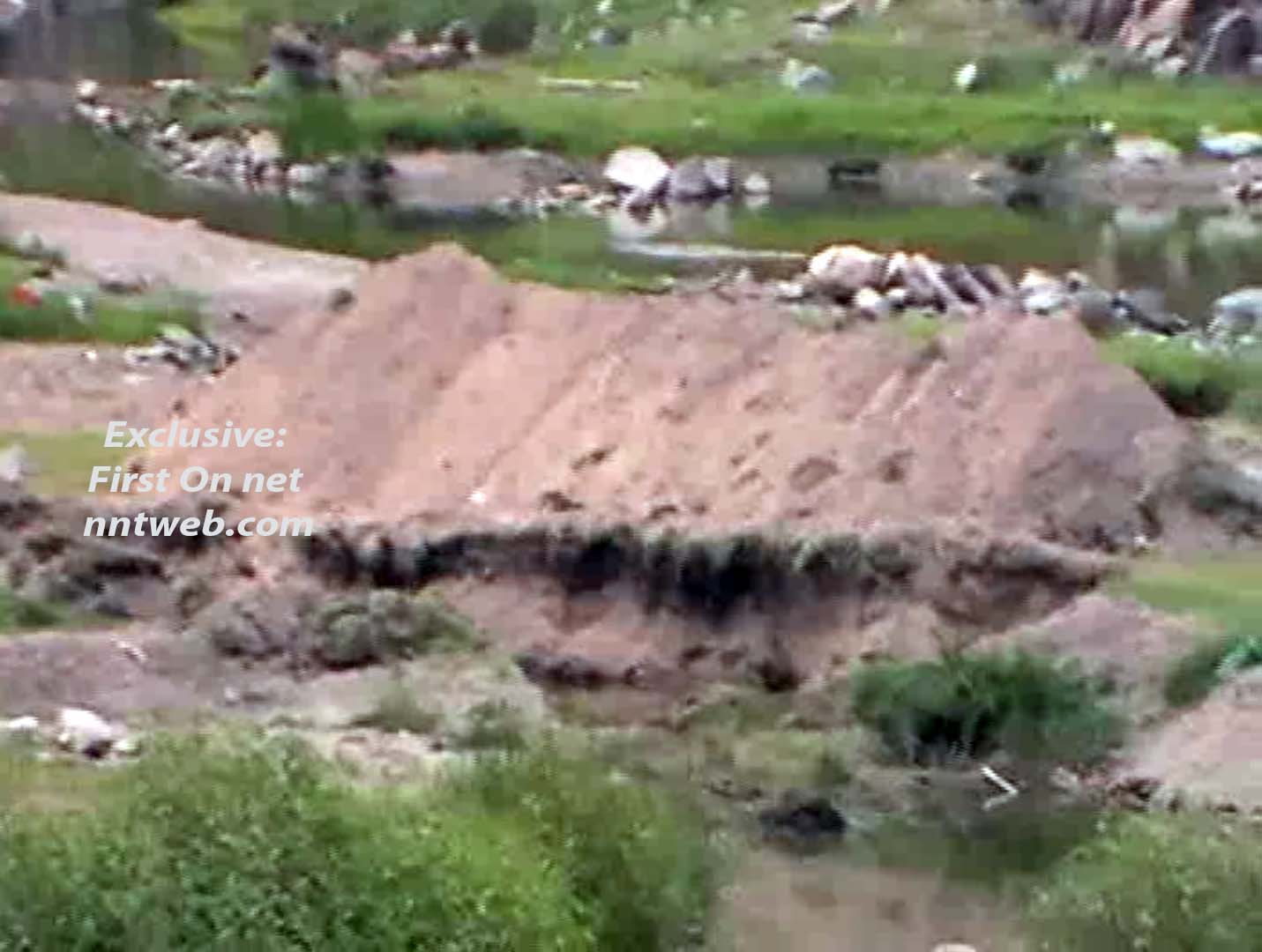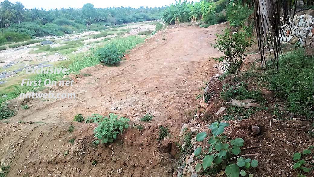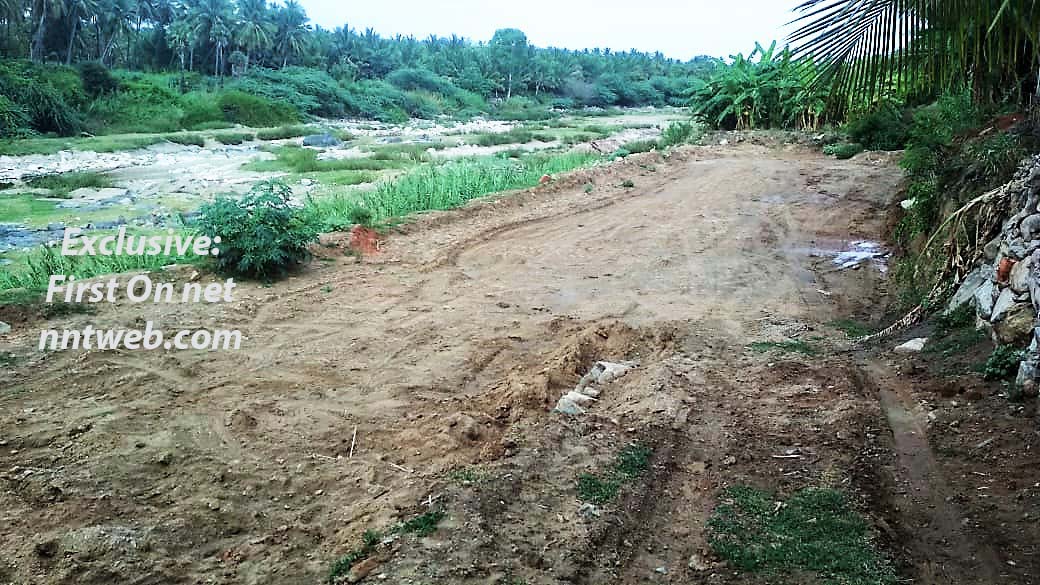 வெளிப் பார்வைக்கு ஆற்றுப் படுகைக்குள் வாகனங்கள் போவது சாத்தியமில்லை என்றே தோன்றும். ஆனால், ஆற்றுப் படுகையில் சுமார் நூறு மீட்டர் அளவிற்குப் பிரத்யேகமாக சாலை அமைத்து, ஜே.சி.பி. இயந்திரம் கொண்டு வெளிப்படையாகவே மணல் அள்ளப்பட்டுக் கொள்ளையடிக்கப்படுகிறது. ஜே.சி.பி. கொண்டு அள்ளப்படும் மணல் ஆற்றுப் படுகையின் ஒரு ஓரமாகக் குவித்து வைக்கப்படுகிறது.